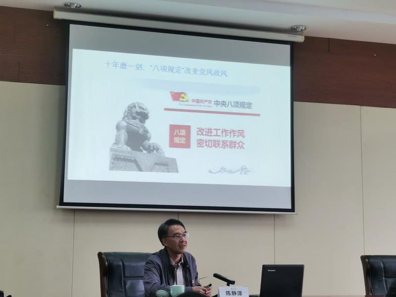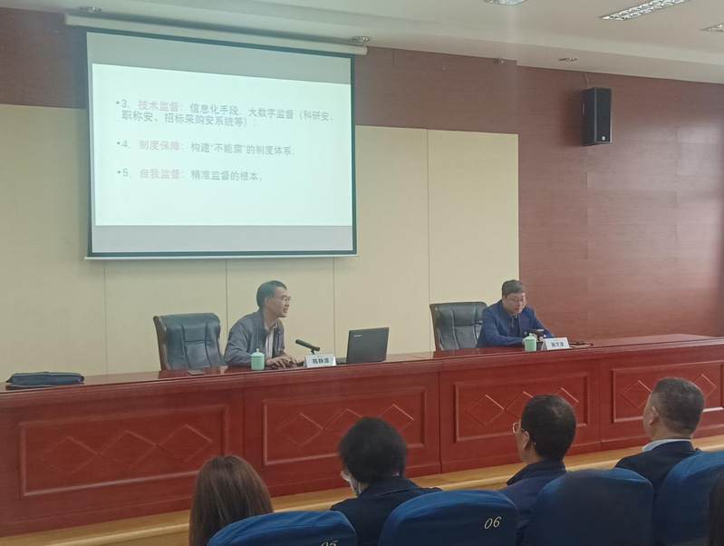 陈静源同志从“怎么看十八大以来的反腐效果”、“怎么看教育领域反腐”及“怎么做精准监督”三个维度开展讲授。他针对杭州校区各单位实际,深入剖析相关领域、环节潜在的风险,提出发挥好党支部纪检委员作用、加强技术监督与制度保障等精准监督体系构建的方法举措,并结合高校师德失范案例开展警示教育。